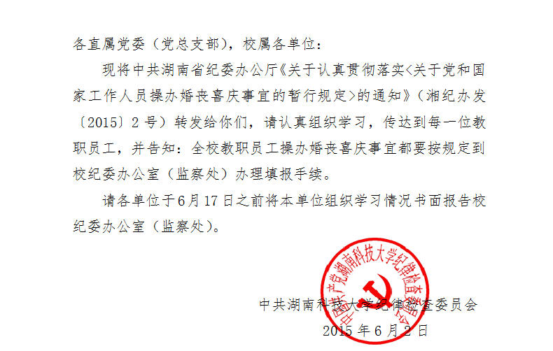 党群工作 党群工作 首页 / 党群工作 / 政策文件 政策文件 科大党纪发〔2015〕3号关于转发《关于认真贯彻落实_关于党和国家工作人员操办婚丧喜庆事宜的暂行规定_的通知》的通知 发布时间:2015年06月17日 编辑: 访问量: 足球一世666814