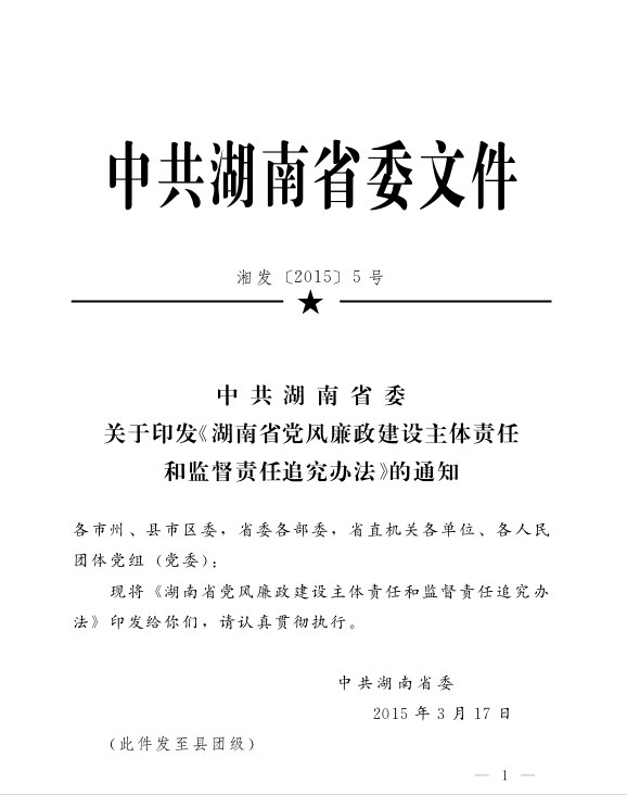 湖南省党风廉政建设主体责任和监督责任追究办法