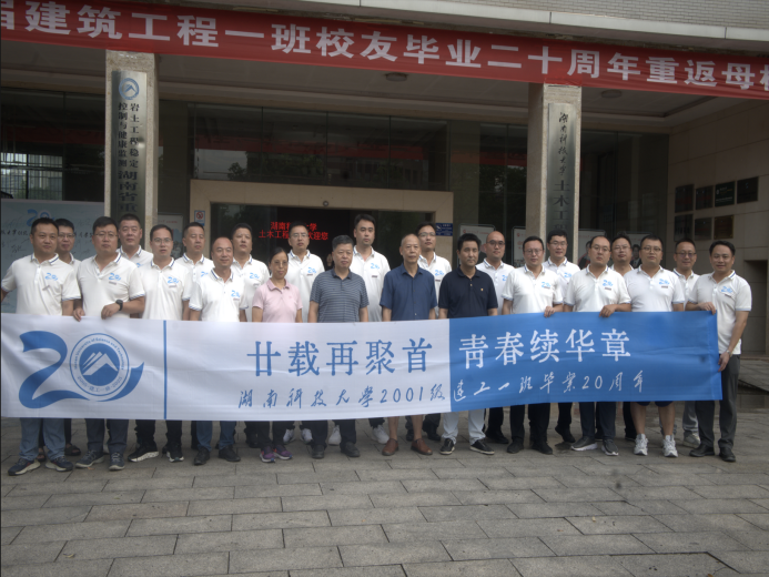 7月12日,20名01级建工一班毕业生时隔二十载重返母校,与当年的任课老师祝明桥、胡秀兰、石卫华、丁时宝四位恩师于足球一世666814土木楼230会议室相聚一堂,在熟悉又陌生的校园里重温青春岁月,共话师友深情。